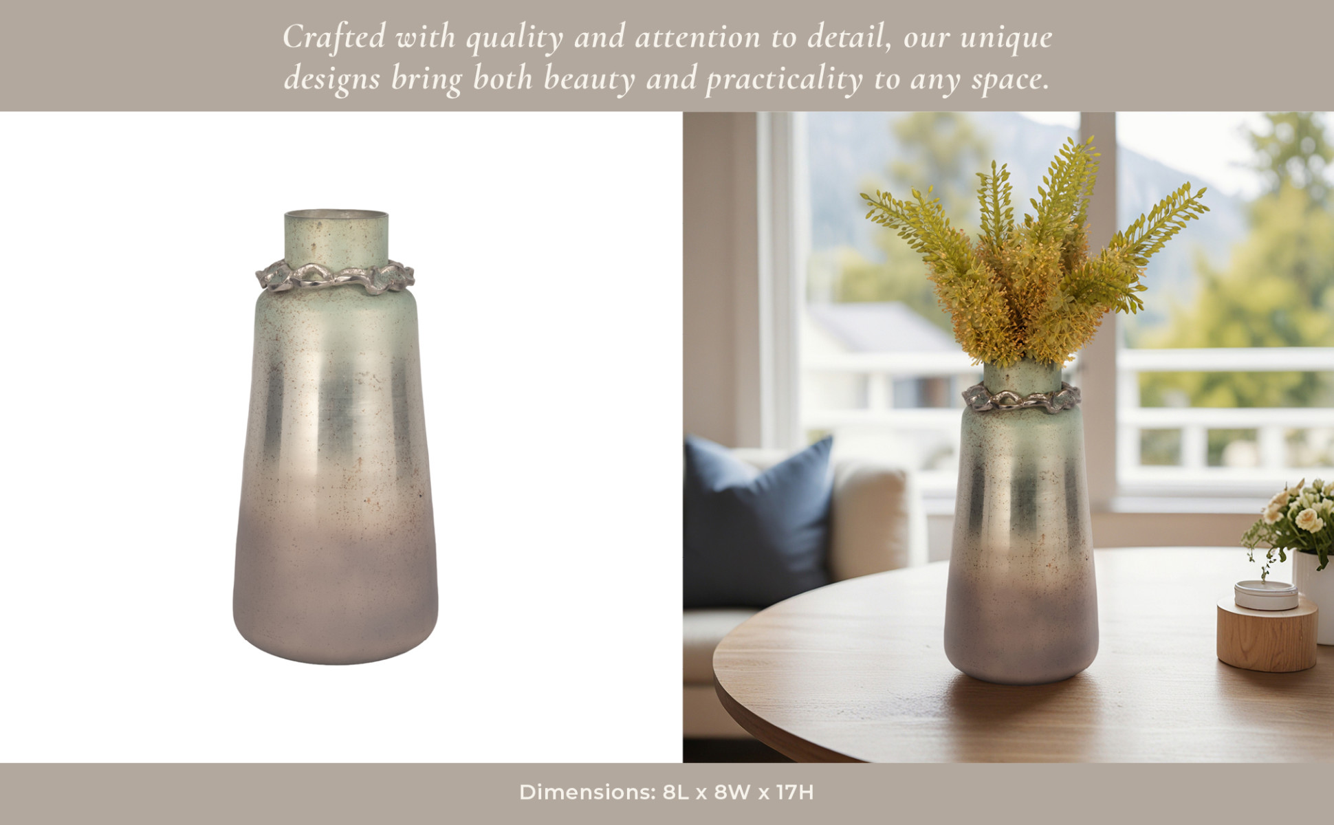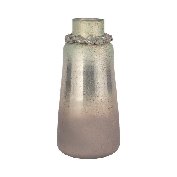 Glass,17"h,vase W/bracelet,nickle W/aloe