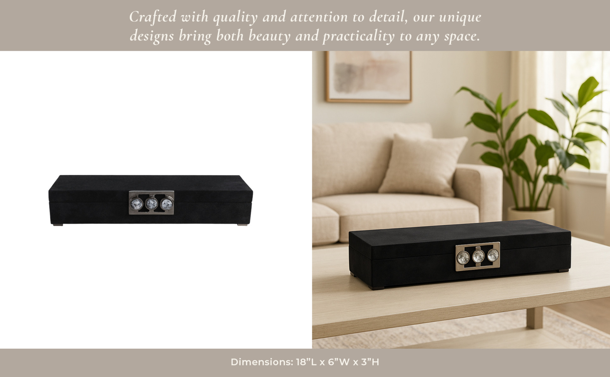 18" Zahara Suede Moonstone Gemstone Hardware Box