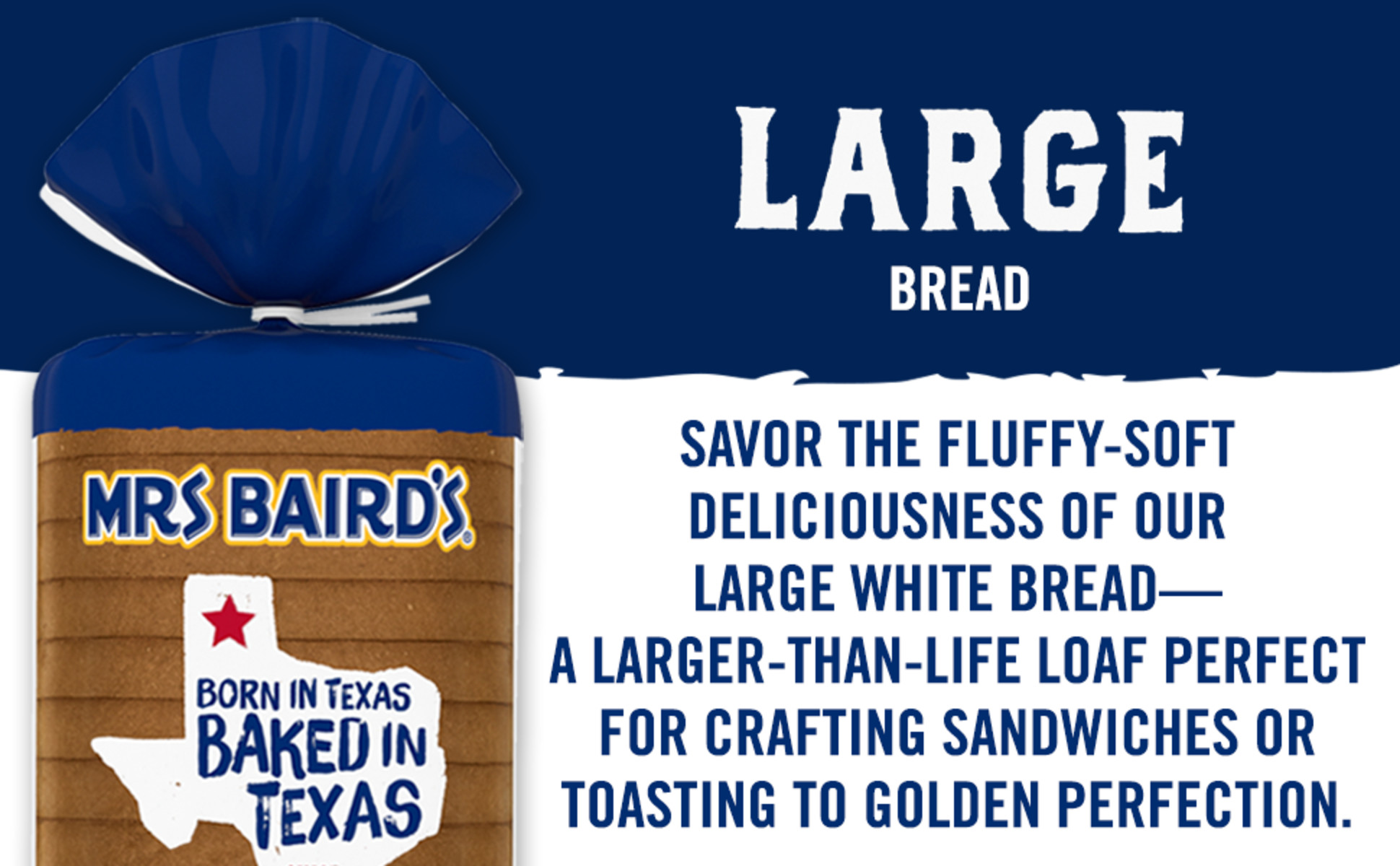 Whether you're making toast with jam for breakfast or a Tex-Mex inspired chicken sandwich for dinner, Mrs. Baird's White Bread is perfect for all occasions