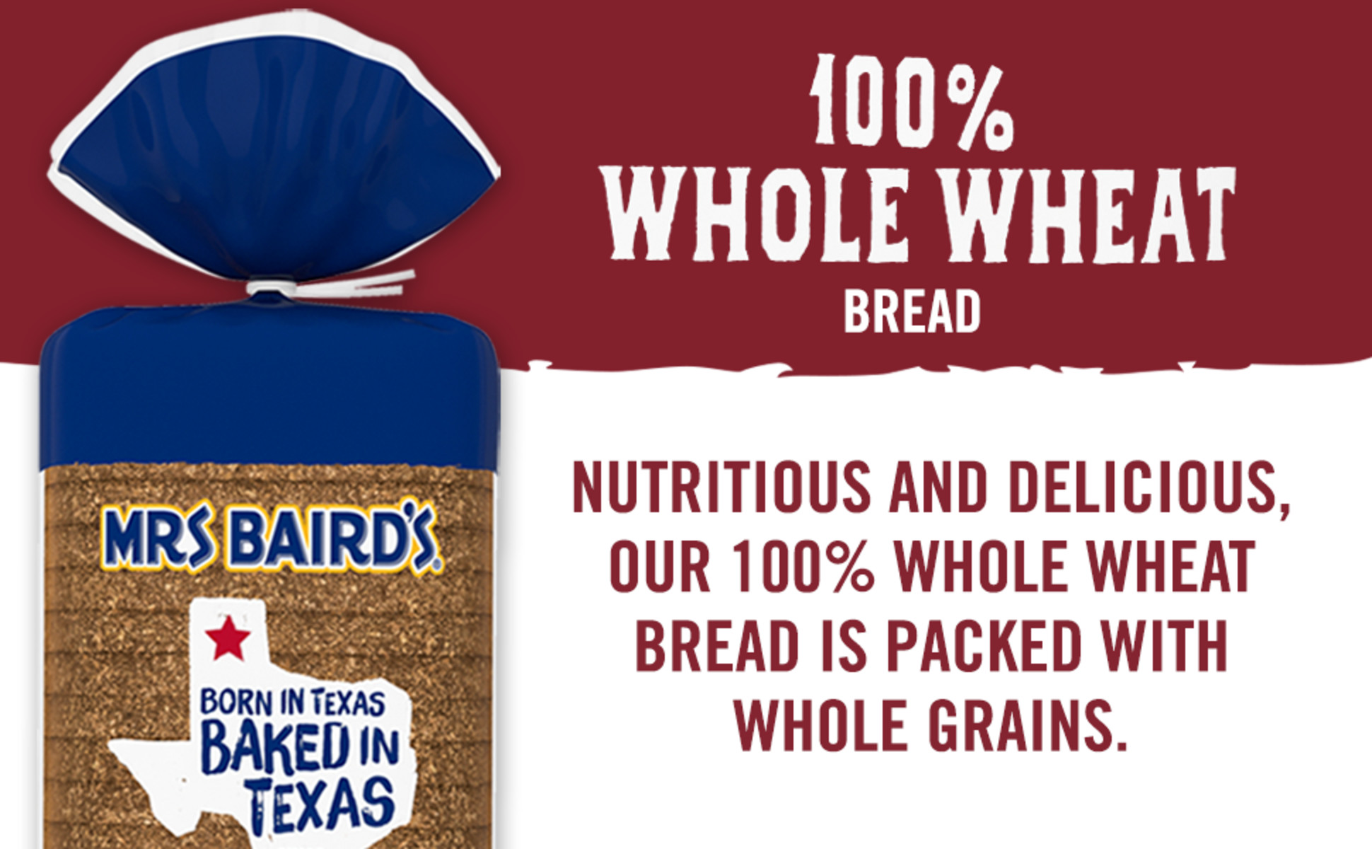 Mrs Baird's 100% Whole Wheat Bread is baked with quality ingredients