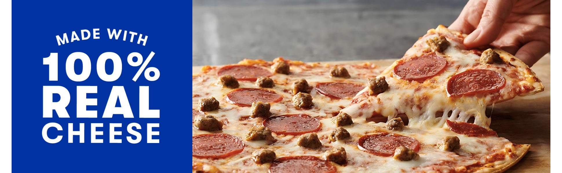 Introducing Jack’s® Thin Crust Frozen Sausage and Pepperoni Pizza. A delicious blend of 100% real cheese, sausage and pepperoni with pork, chicken and beef.