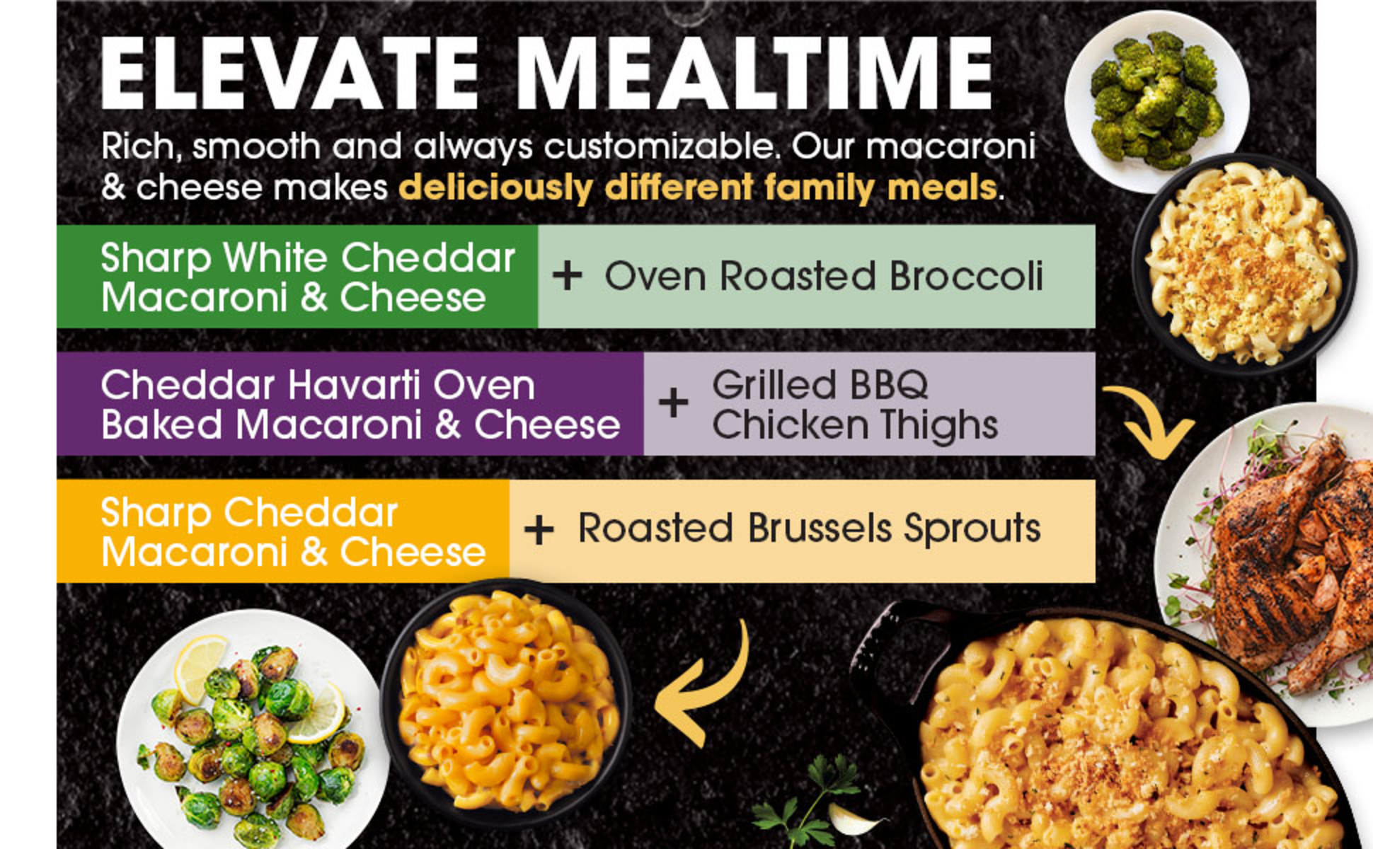 Sharp White Cheddar, Cheddar Havarti, Sharp Cheddar, Parmesan White Cheddar