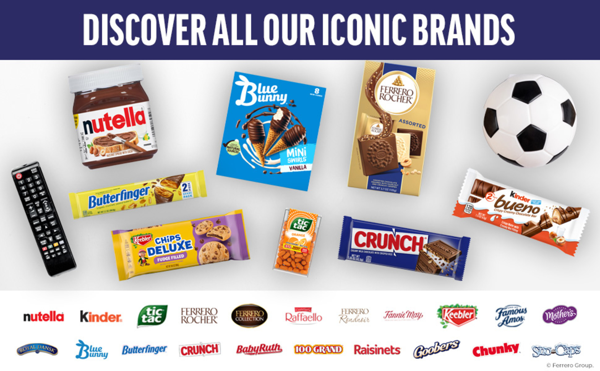 Discover our wide-ranging assortment, from premium chocolates like Ferrero Rocher and Raffaello; Nutella favorites; cookies including Keebler, Famous Amos, and Royal Dansk; Kinder favorites from Kinder Joy to Kinder Bueno and Kinderini; iconic bars Butterfinger, Crunch, 100 Grand, and Baby Ruth; Tic Tac mints; and frozen treats such as Blue Bunny and Bomb Pop. There’s a sweet treat for everyone!