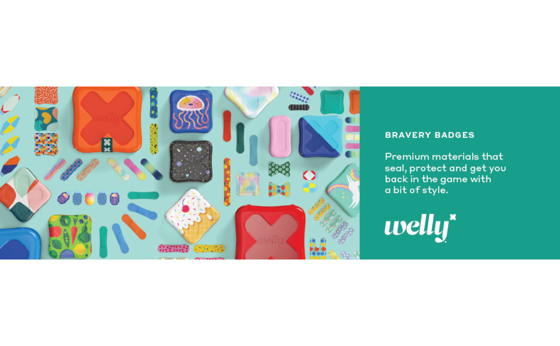 We’ve got your back, your elbows, and your knees. This pack of flex fabric bandages keeps you protected and prepared for anything that comes your way. Trend-setting Colorwash bandages come in three bold tie-dye patterns that call for compliments. Just the thing to get you back in the game with a dash of style.Welly is for everyone that was afraid to fall down, fail, get bumped, get scratched and did it anyway. Welly is for the wellness in all of us, however that looks, and for being prepared for whatever comes our way. We wear our bandages like badges of honor for a life fully lived. Our portable first aid kits are packed with essentials, so you have what you need, when you need it. And our signature Welly tins can be reused again and again—the possibilities are endless.
