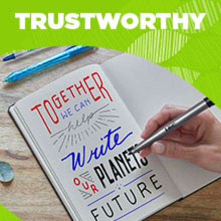 The classic, 97% recycled plastic, slender, semi-clear barrel makes it easy to check pen ink levels and makes the pen generally comfortable to hold; the pen is also suitable for lefties and righties, as the ink pen dries quickly to prevent smearing.