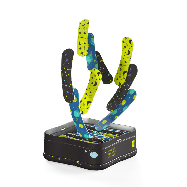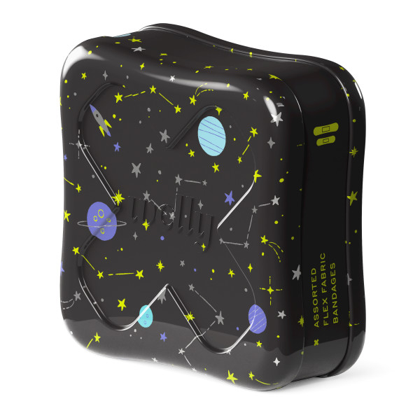 Blast off to your next adventure. These bravery superstars are like bandage badges of honor with three far out patterns that help explorers wear bumps and cuts with pride. Just the thing to get you up and running again.Welly is for everyone that was afraid to fall down, fail, get bumped, get scratched and did it anyway. Welly is for the wellness in all of us, however that looks, and for being prepared for whatever comes our way. We wear our bandages like badges of honor for a life fully lived. Our portable first aid kits are packed with essentials, so you have what you need, when you need it. And our signature Welly tins can be reused again and again—the possibilities are endless.