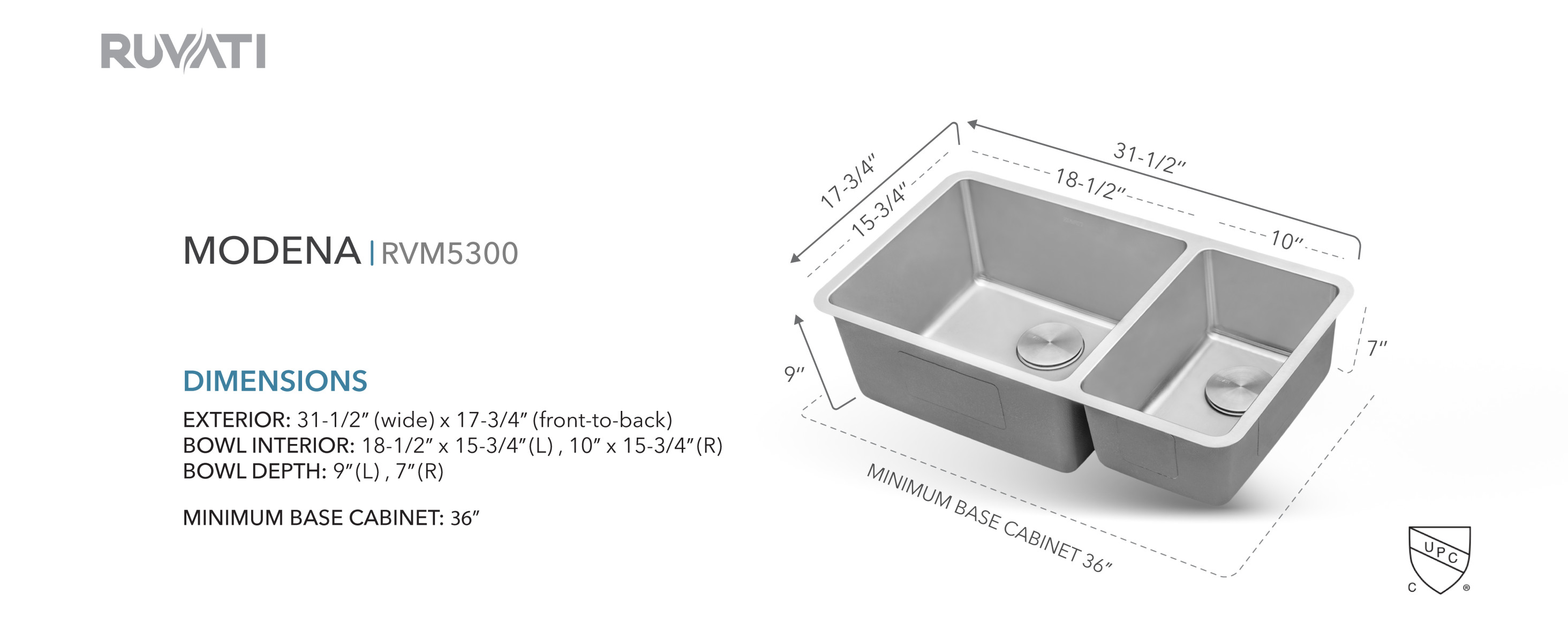 32" x 18" x 9" (L), 7" (R)