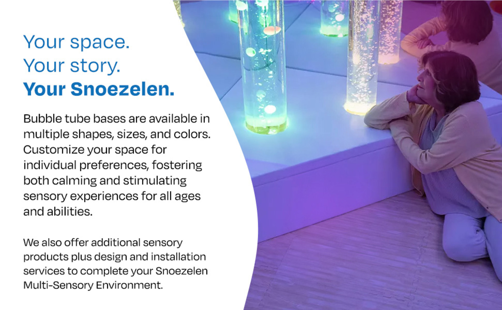 The base provides a soft, secure area for users to experience visual engagement with their Snoezelen Bubble Tubes.