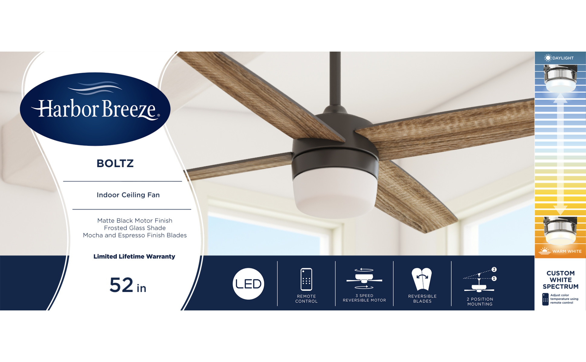 Quiet, reversible motor efficiently circulates cool air in the summer and warm air in the winter, cutting down on energy costs