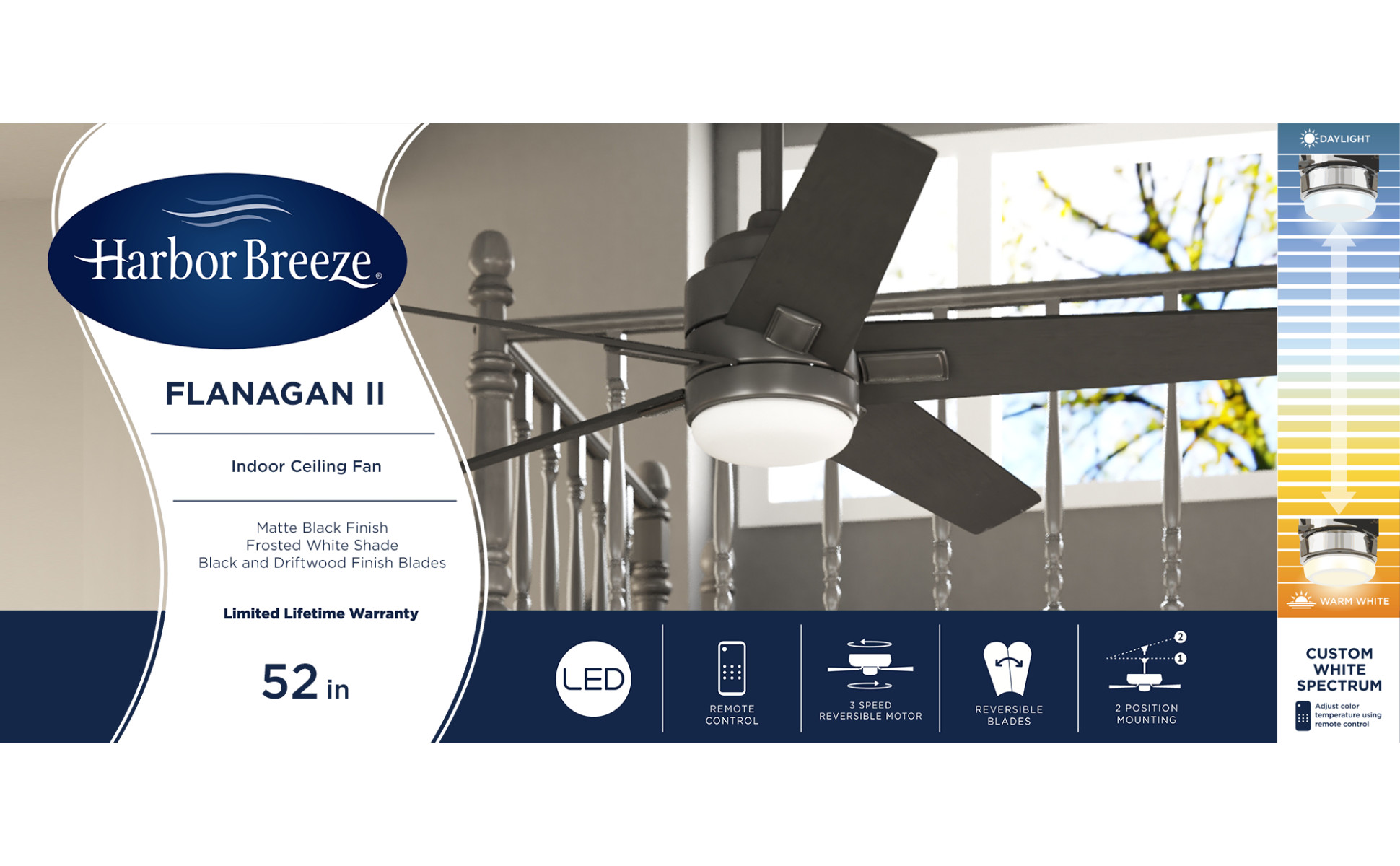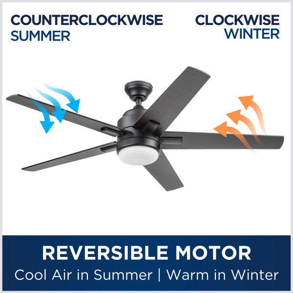 Matte black finish ceiling fan from the Flanagan collection features 5 reversible black/driftwood blades so you can choose the right look for your home