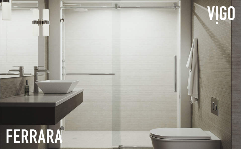 VIGO presents the Ferrara Frameless Sliding Shower Door, where luxurious hardware meets the durability of tempered glass. The smooth top rollers allow for an air-gliding opening and closure. Ferrara supports reversible door installation through either a left-side or right-side opening setup. Its continuous seal strips along the door prevent water from leaking out of the shower. Premium stainless steel hardware with a 7-layered finish withstands wear & tear, keeping the metal components like-new for years. The simple instructions allow for an easy DIY-style installation at home.