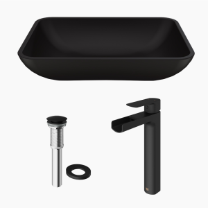 Elevate your modern bathroom design with a matching drain available from VIGO. Crafted with beautiful silhouettes and statuesque height, vessel faucets offer ample space for easier hand-washing and pair perfectly with vessel bathroom sinks.