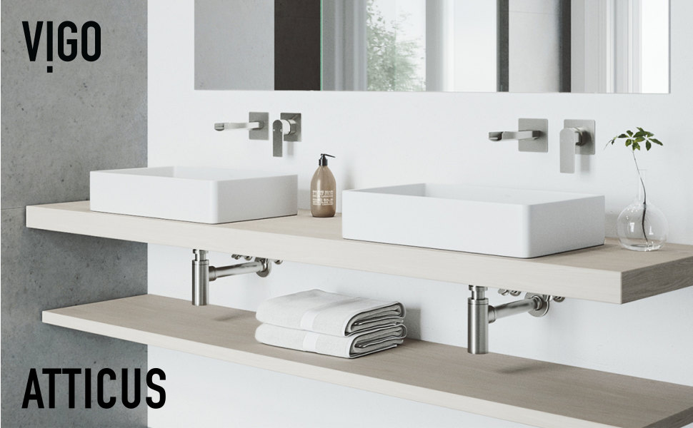 VIGO presents the Atticus Wall Mount Faucet. Its modern design with a premium 7-layer hardware coating withstands wear and tear for a lifetime. The nozzle prevents mineral buildup and is always easy to clean. A single handle on the faceplate easily controls water temperature and volume. Atticus faucets feature a flow rate of 1.2 Gallons Per Minute to conserve water without compromising water pressure. The simple instructions allow for an easy DIY-style installation at home.