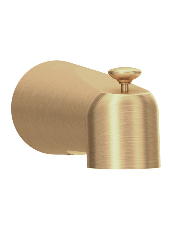 The Dia collection offers a contemporary design that fits any budget. This Dia Tub Spout features a pull up diverter for switching the flow of water from the tub spout to the showerhead. The threaded connection is simple to install and remains a secure fit after the setup process is complete. The sturdy brass construction of this diverter tub spout, along with its limited lifetime warranty, ensures it will be a polished addition to any bathroom for years to come.