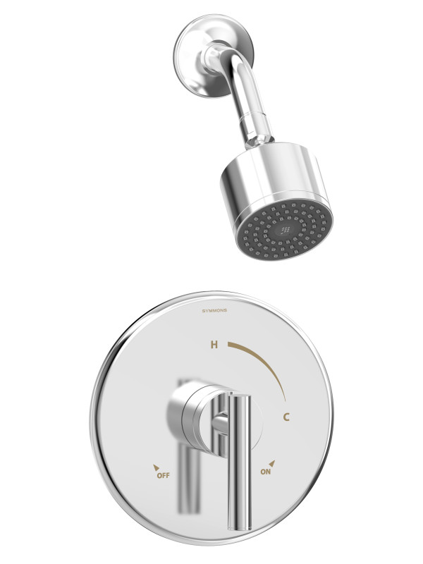 The Dia Single Handle Wall Mounted Shower Trim boasts a modern sophistication to complement contemporary bathroom designs. Plated in a scratch resistant finish over solid metal, this shower trim has the durability to add contemporary styling to your bathroom for a lifetime. With an ADA compliant single lever handle design, the solid brass valve cover plate features hot and cold indicators to ensure custom water temperature setting with ease of use. At an eco friendly low flow rate of 1.5 GPM, the single mode showerhead is WaterSense certified so that you can conserve water without sacrificing performance, saving you money on your water bill. This model includes everything you need for quick installation. This shower trim kit includes a shower arm, low flow showerhead, brass escutcheon, and a lever handle. You'll easily be able to update your bathroom without having to replace your valve. With features that are crafted to last and a style that is designed to please, the Symmons Dia Single Handle Wall Mounted Shower Trim is a seamless addition to your bathroom and is backed by our limited lifetime warranty.