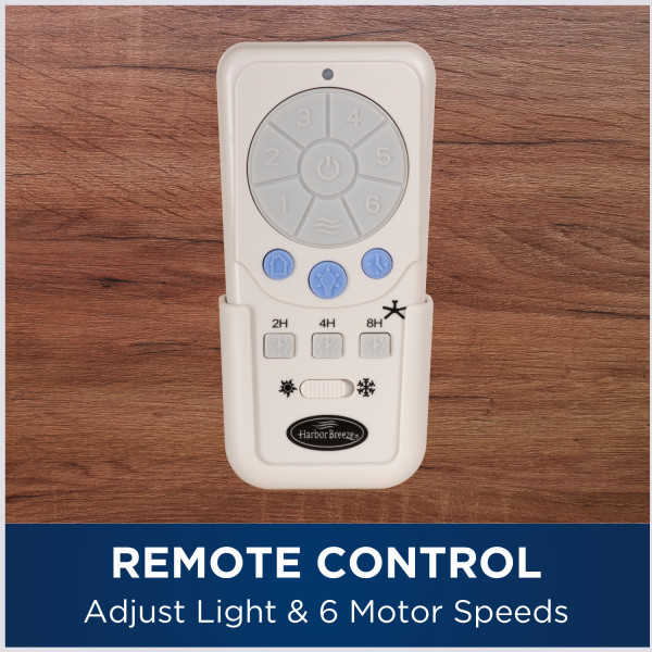 Remote control included; control the speed settings and light output