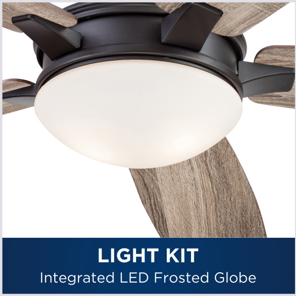 Integrated LED frosted globe light kit includes two E26 A19 bulbs and is also dimmable 20% to 100%, 800 lumens, 9.5 watts, and 3000K color temperature