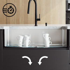 The sink design allows for fast and complete water drainage.