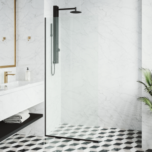 VIGO Zenith Fixed Frame Tempered Glass Reversible Shower Screen in Matte Black