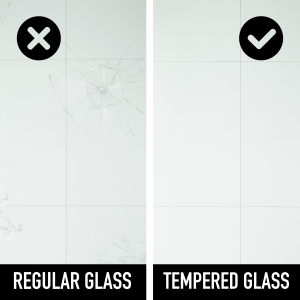 The tempered glass used is 3/8" thick and ANSI Z97.1 and 16 CFR 1201-certified.