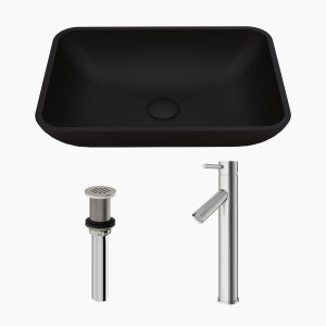 Effortlessly elevate any bathroom design with a matching drain and deck plate available from VIGO.