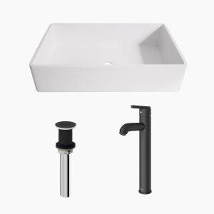 Effortlessly elevate any bathroom design with a matching drain and deck plate available from VIGO.