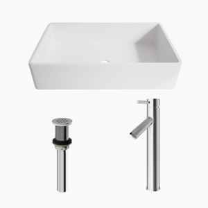 Effortlessly elevate any bathroom design with a matching drain and deck plate available from VIGO.