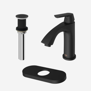 Effortlessly elevate any bathroom design with a matching drain and deck plate available from VIGO.
