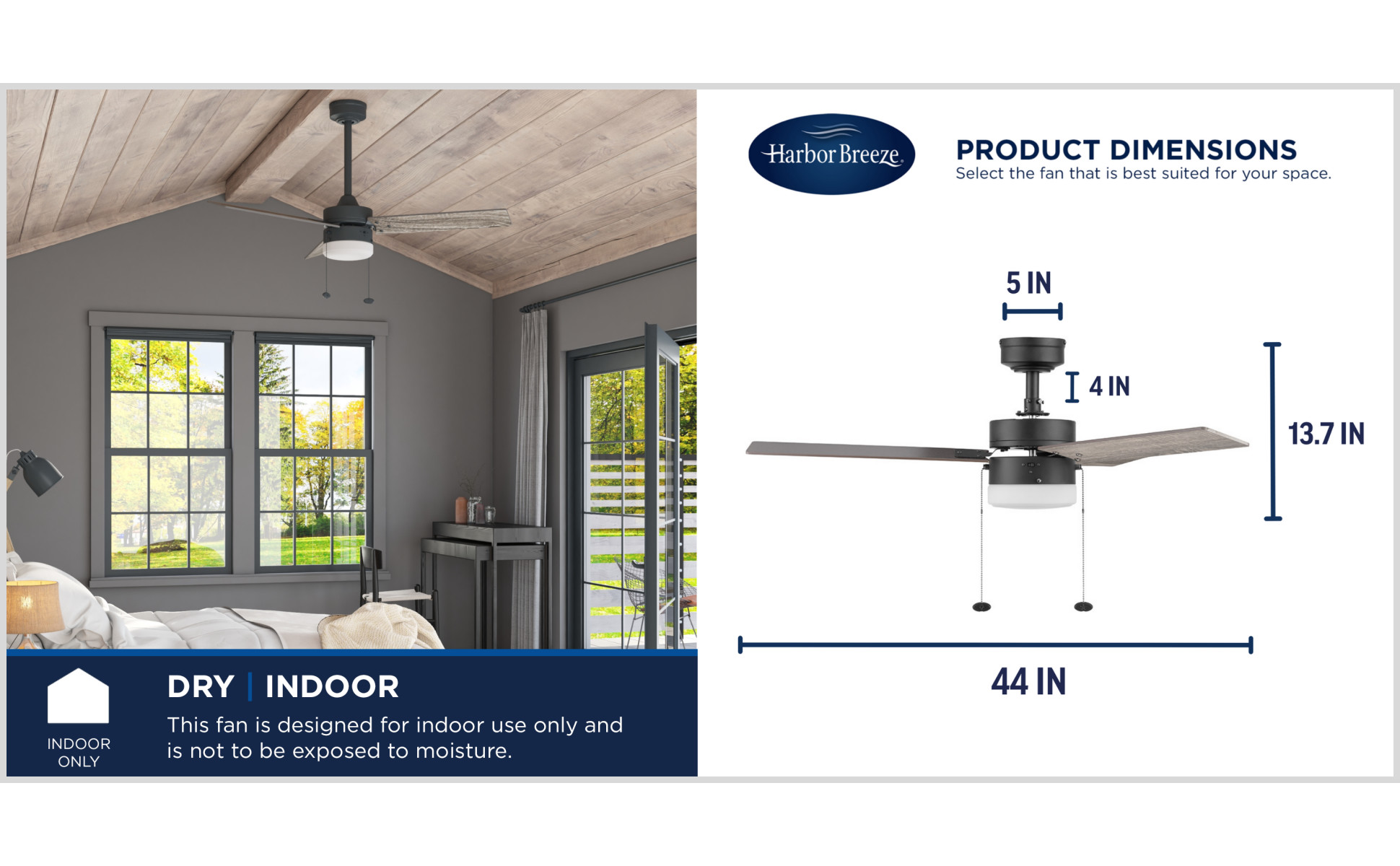 44-in fan provides airflow up to 2470 CFM, making it ideal for small to medium sized rooms