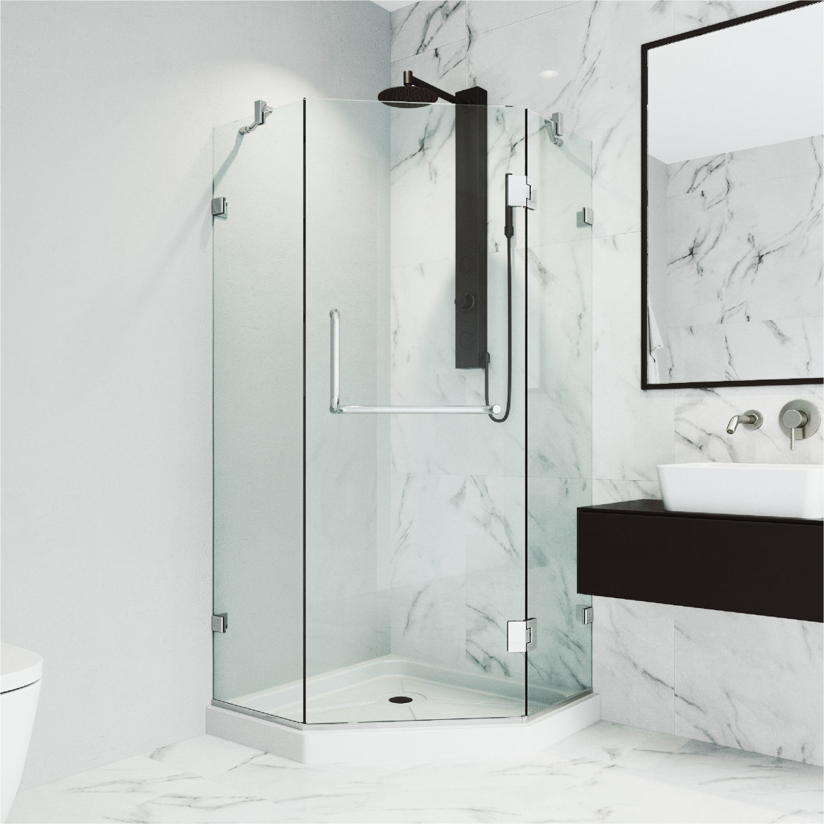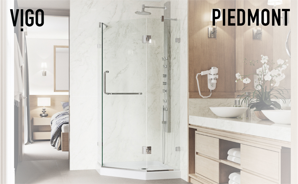VIGO presents the Piedmont Frameless Neo-Angle Shower Enclosure with a low-profile base. The premium stainless steel hardware is coated with a 7-layered finish that withstands wear & tear, keeping the metal components like-new for years. MagnaLock Technology features a full-length magnetic catch to close the door tightly without any gaps. Continuous seal strips along the entire door length prevent water from leaking out of the enclosure. The simple instructions allow for an easy DIY-style installation at your facility.
