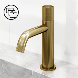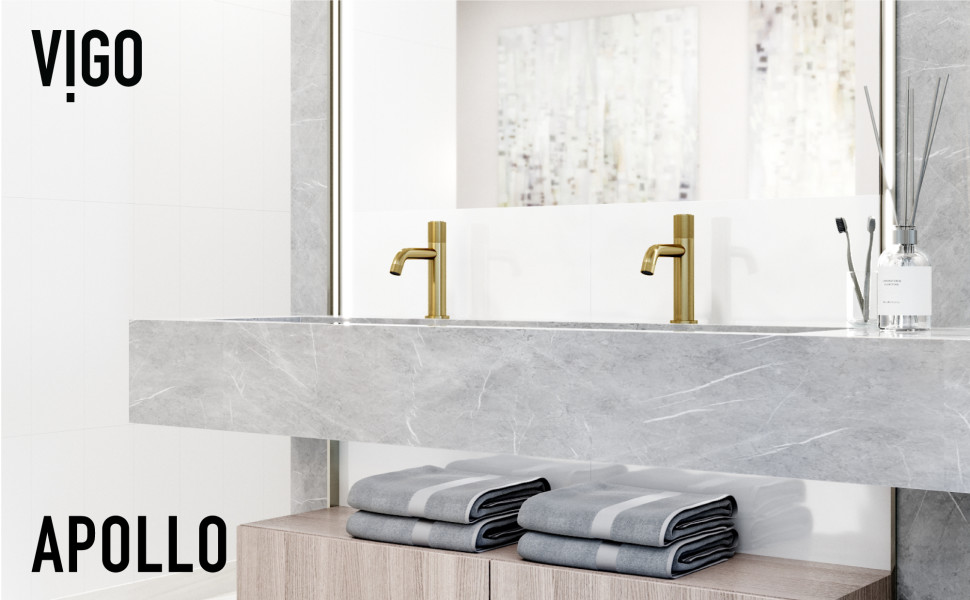 Elegantly distinguished by a sleek silhouette and contrasting textures, The Apollo Collection by VIGO presents a modern yet timeless single-handle bathroom faucet. Influenced by the industrial architecture of New York City, The Apollo faucet for the bathroom sink is the epitome of luxury bath design. The elegant single push-button offers you seamless control, making it easy to turn on and off your water flow, while a twist of the knob allows you to easily adjust the water temperature. Diamond knurling complements its decadent 7-layer plated hardware finish ensuring that this faucet for the bathroom remains a lasting fixture in your home. Enjoy a soothing bathroom experience with an elegantly curved high arc spout that provides plenty of space for washing.