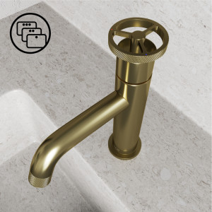 Inspired by Brooklyn architecture, The Cass Collection introduces an innovative single-hole bathroom faucet that blends modern with industrial design. Constructed from solid brass, the bath faucet features a low arc spout and a unique wheel handle with diamond knurling details. The single handle is easy to operate, while the sleek spout ensures a tranquil hand-washing experience and conserves water without sacrificing performance. The 7-layer finish resists rust and wipes clean in seconds to ensure long-lasting beauty. This beautiful sink faucet for the bathroom is gorgeous enough to inspire your next bathroom remodel.