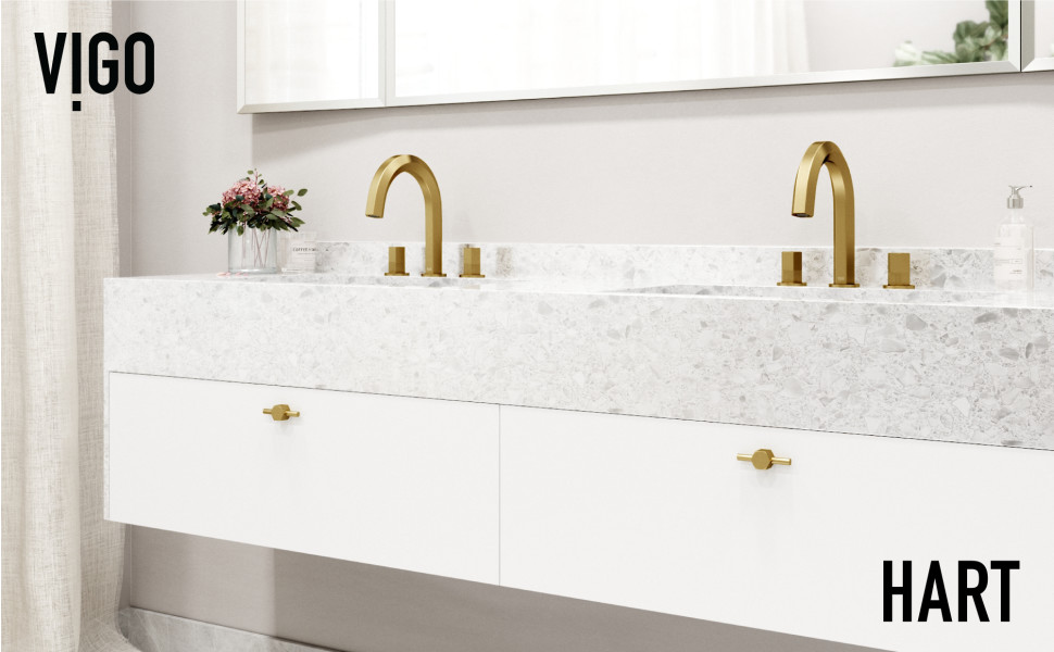 Introduce industrial design into your bathroom with The Hart Collection by VIGO. Defined by stunning silhouettes and contrasting textures, this widespread bathroom faucet features two sleek handles, intricate diamond knurling details, and a hexagonal-shaped silhouette. The two handles are designed for easy operation and seamless water volume and temperature control. The gooseneck faucet provides plenty of space for hand-washing and the solid brass construction ensures long-lasting durability. This two-handle bathroom faucet features a simple DIY installation process that makes transforming your bath space quick and easy.