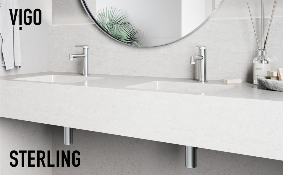 Embrace modern bathroom design with a carefully curated bathroom sink faucet from The Sterling Collection by VIGO. Inspired by New York City’s glistening skyline, The Sterling showcases a sleek single-handle lever with clean lines and touches of textured diamond knurling. Its cylindrical silhouette and square spout add visual impact to your bathroom and deliver a soothing flow of water into the bathroom sink below. VIGO’s proprietary technology features provide optimal performance, accommodate seamless installation, and ensure that your bathroom fixture lasts a lifetime. Invite true luxury into your bathroom with The Sterling Collection by VIGO.