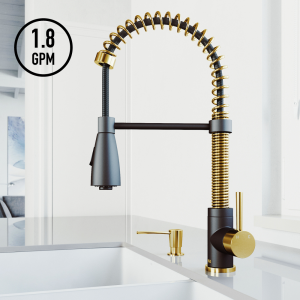 VIGO Brant Pull-Down Spray Kitchen Faucet In Matte Brushed Gold/Matte Black with Soap Dispenser