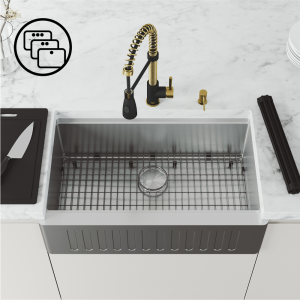 Effortlessly upgrade your kitchen design with a matching sink drain, soap dispenser, or deck plate available from VIGO. Complete the look with a farmhouse kitchen sink or stainless steel sink.