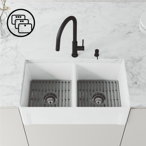 Effortlessly upgrade your kitchen design with a matching sink drain, soap dispenser, or deck plate available from VIGO. Complete the look with a farmhouse kitchen sink or stainless steel sink.
