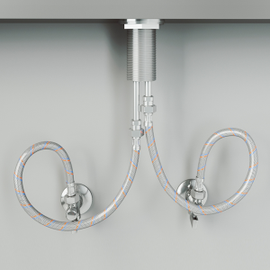 Kitchen faucets come with metal braided PEX hot and cold water lines that are constructed to resist freeze-cracking, prevent corrosion, and deliver a silent flow of water. Red and blue supply lines are easy to distinguish.