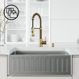 Effortlessly upgrade your kitchen design with a matching sink drain, soap dispenser, or deck plate available from VIGO. Complete the look with a farmhouse kitchen sink or stainless steel sink.
