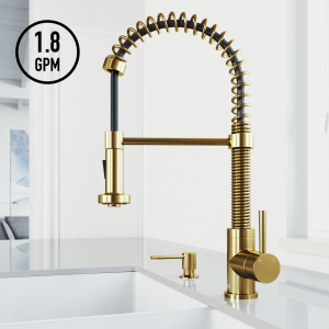 VIGO Edison Kitchen Faucet with Soap Dispenser in Matte Brushed Gold