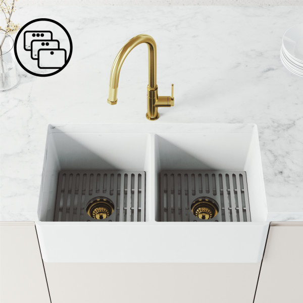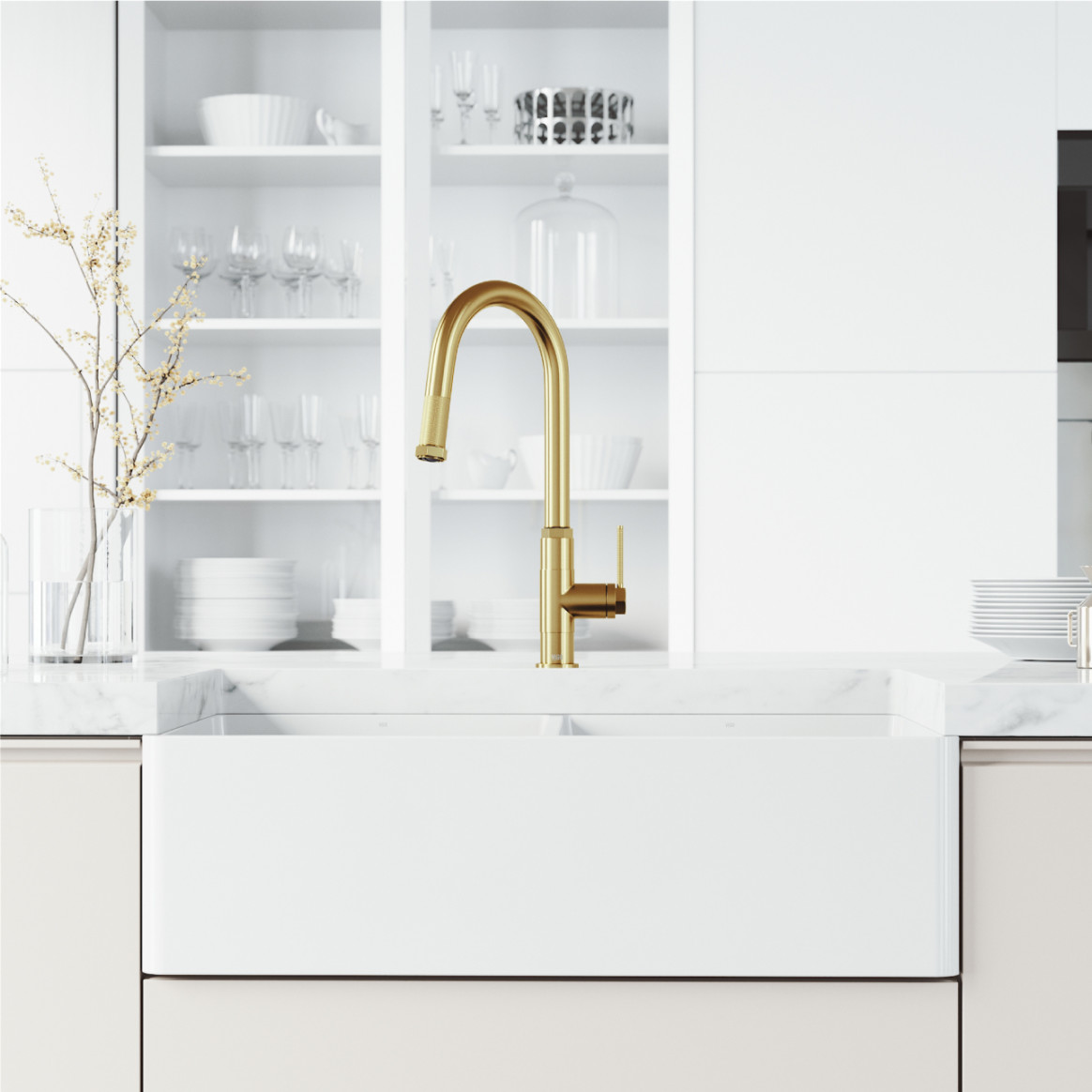 Elevate your design with kitchen sink accessories including a matching VIGO sink drains, soap dispensers, or deck plates. Gooseneck kitchen faucets pair beautifully with a variety of VIGO kitchen sinks.