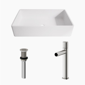 Elevate your modern bathroom design with a matching drain available from VIGO. Crafted with beautiful silhouettes and statuesque height, vessel faucets offer ample space for easier hand-washing and pair perfectly with vessel bathroom sinks.