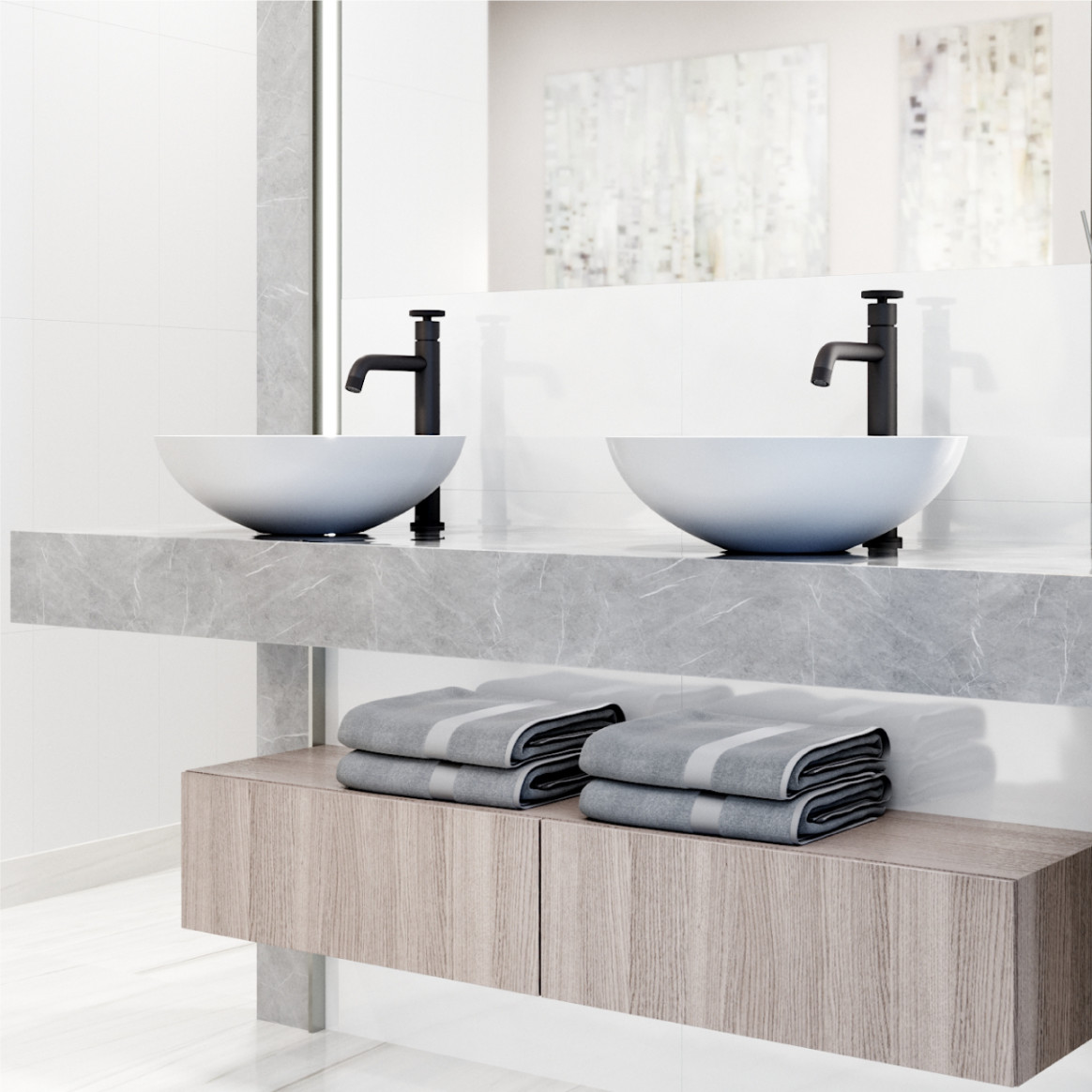 Elevate your modern bathroom design with a matching drain available from VIGO. Crafted with beautiful silhouettes and statuesque height, vessel faucets offer ample space for easier hand-washing and pair perfectly with vessel bathroom sinks.