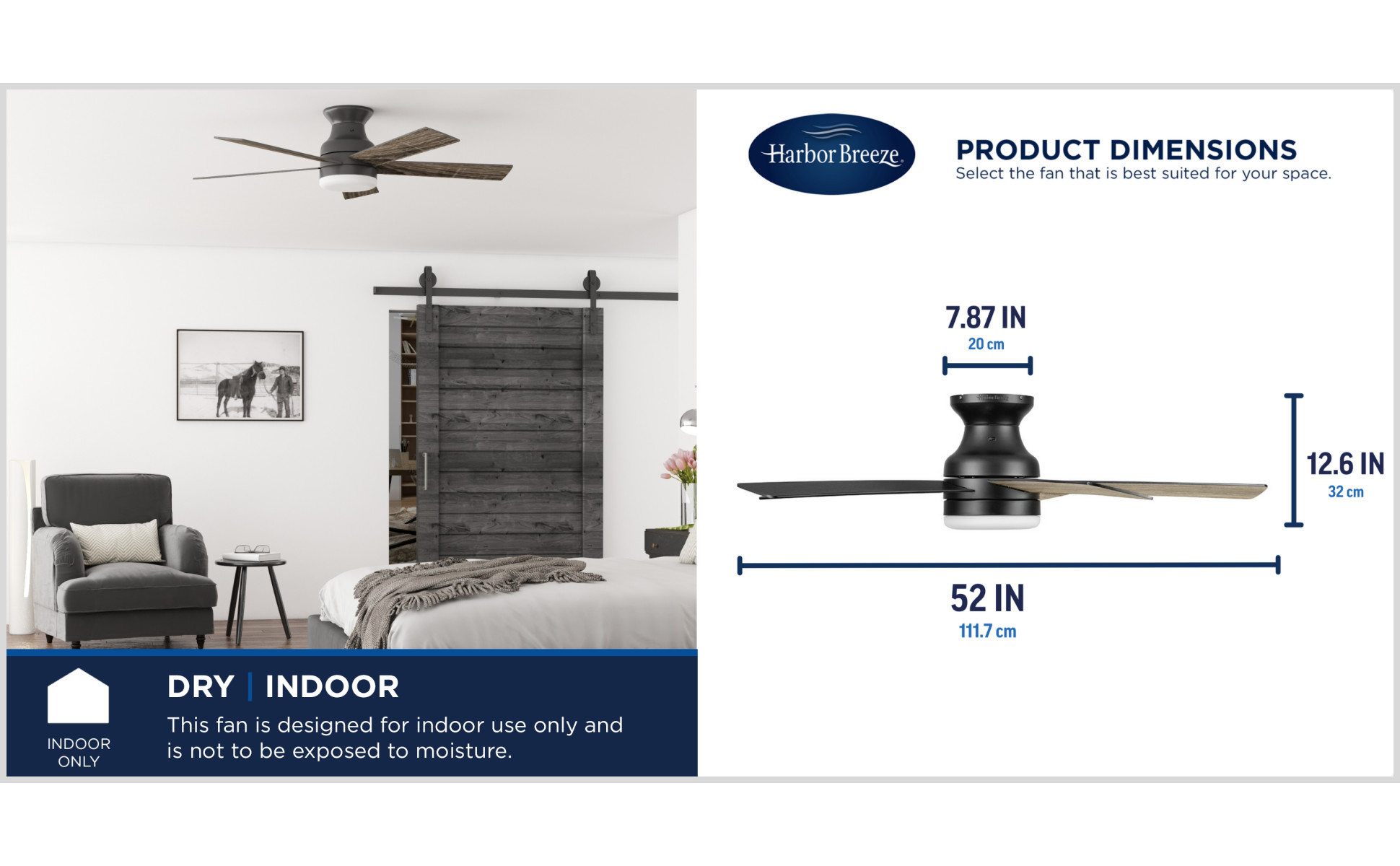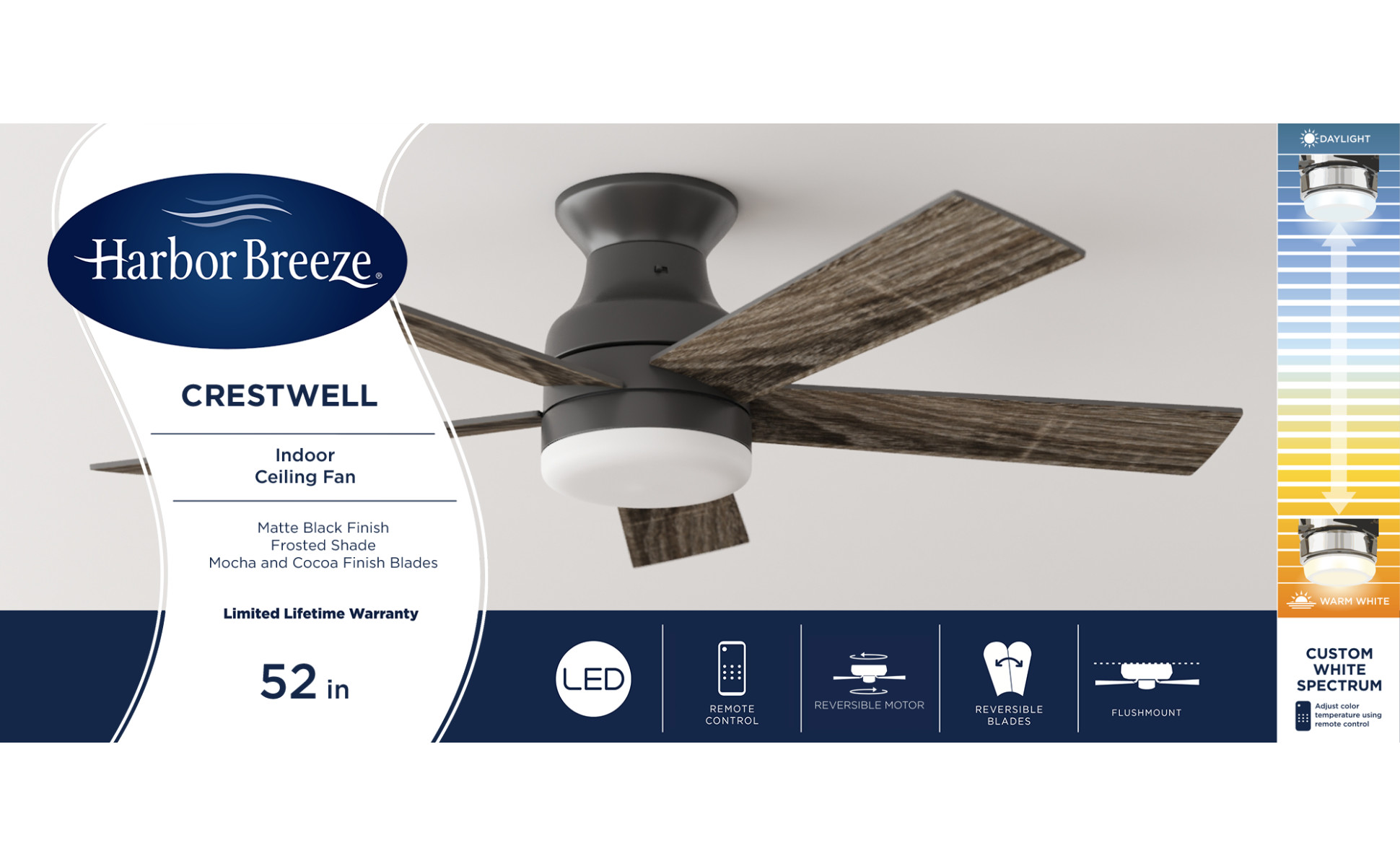 Remote control included for easy adjustments to the speed settings and light output