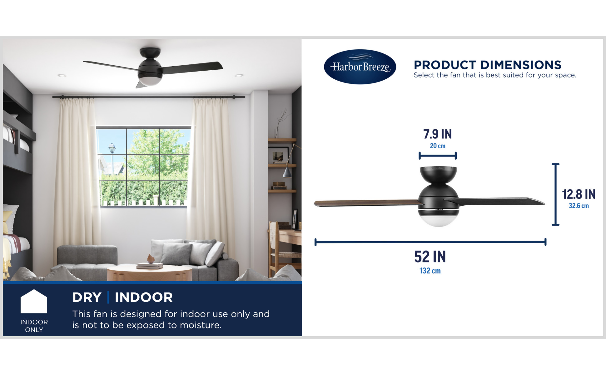 Control the 3 speed settings and light output of your fan with an easy-to-use remote control (included)