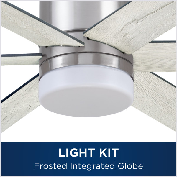 Frosted plastic globe light kit houses integrated LED board that is dimmable, 2000 lumens, 22.5 watts, and adjustable color temperature ranging from a warm white light (2200K), like a candlelight glow, to a bright white light, simulating daylight (6500K