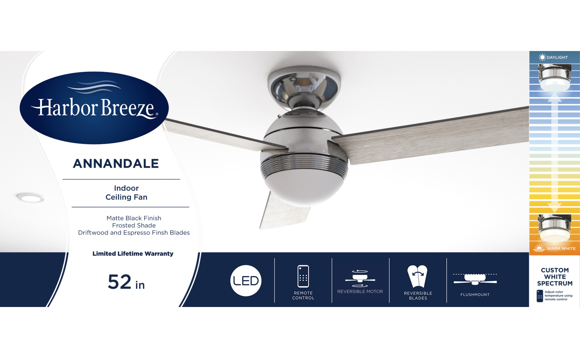 Control the 3 speed settings and light output of your fan with an easy-to-use remote control (included)