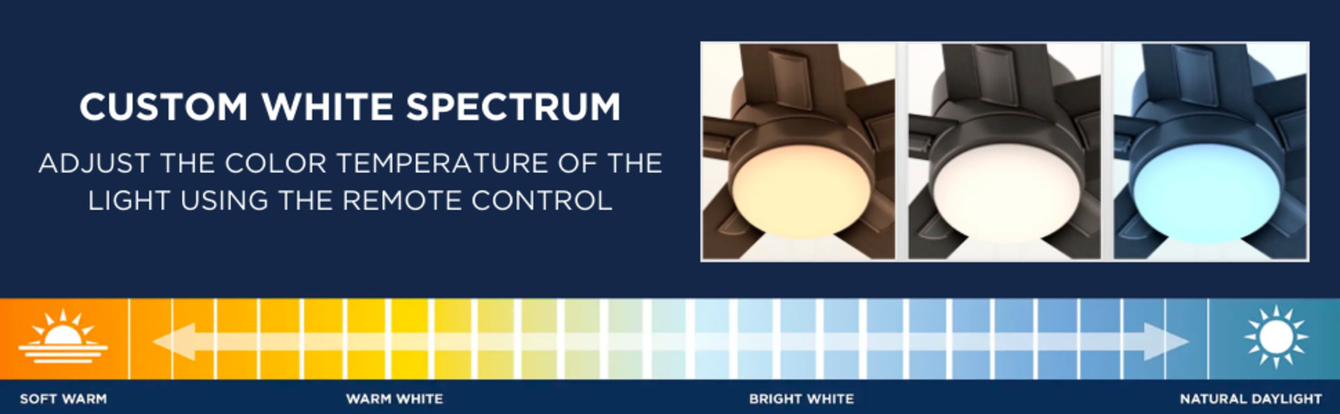 Integrated led board with custom white spectrum technology features light color ranging from a warm white light (2200k), like a candlelight glow, to a bright white light, simulating daylight (6500k)