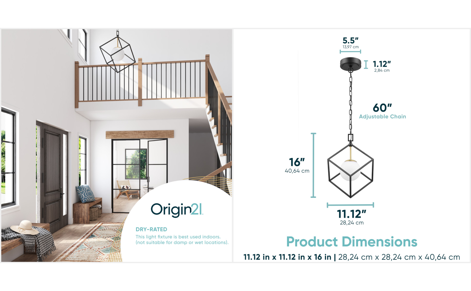 Standard ceiling mount, 60"(5') adjustable chain, 72"(6') lead wire