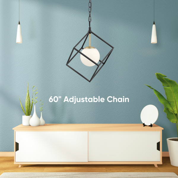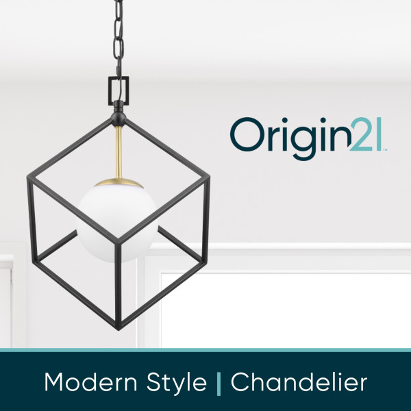 Add a sleek, yet dynamic look to your entryway, main living space or dining room with this modern chandelier from the Maren Collection. This LED chandelier features matte black framework with a touch of brushed gold, perfectly complementing the white opal shade.